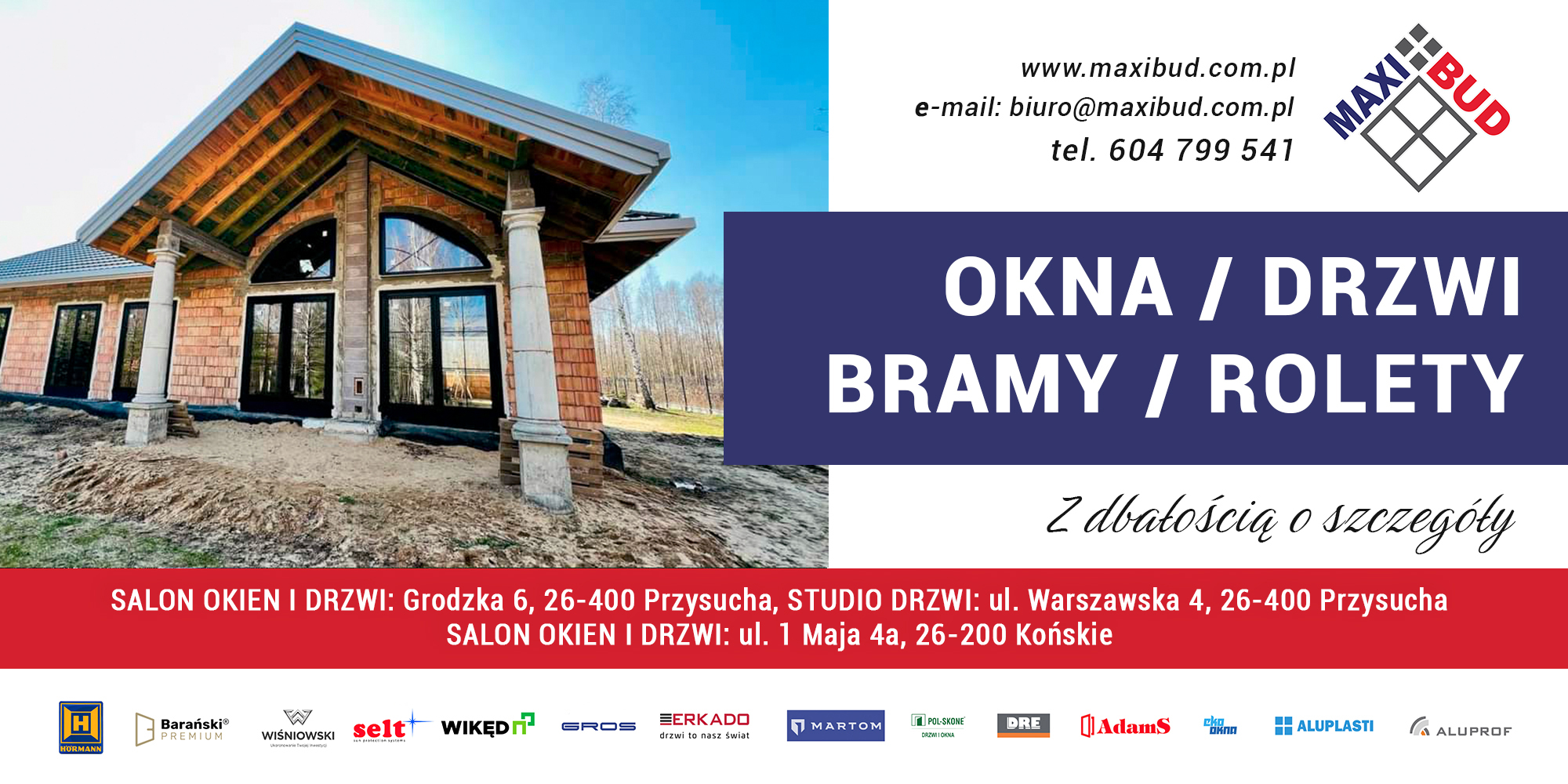 MAXIBUD - OKNA, DRZWI, BRAMY, ROLETY, PARAPETY - Przysucha Końskie